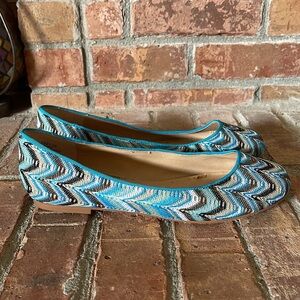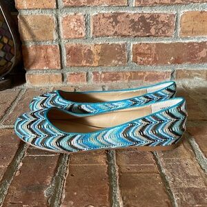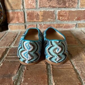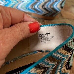 Excellent condition! Blue, brown, and tan woven in a zig zag pattern. Note that these are a 7.5 W.