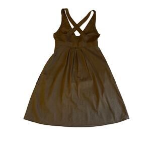 theory Olive Green/ Brown Linen Blend V Neck Cross Back Mini Sundress Size 2 Y2K