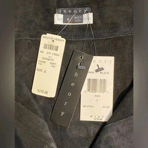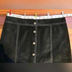 theory Snap-front Black Suede Skirt with topstitching, size 6, NWT