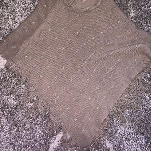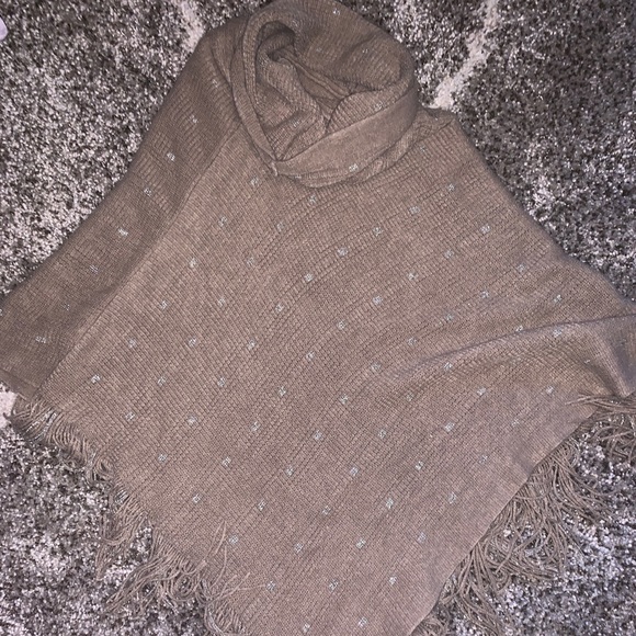 brown shall with fringe along bottom thick neck sparkle silver squares longer