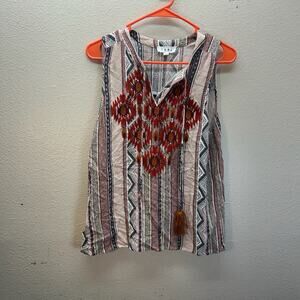 thml Tank top Anthropologie Sz M embroidered Southwestern Tribal boho Tassels
