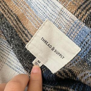 Oversized plaid Thread & Supply button down shirt. brown white and blue. size medium. perfect for fall