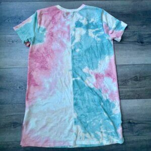three bird nest On The Daily Oversized Slit Tee Dress Tie Die Soft Cozy Vacation in size XL. Super soft material and fun pattern. Excellent condition. Smoke free home. Slight pilling.