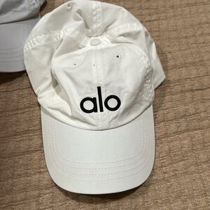 2 hats are alo brand.1lululemon hat. All three are in good condition. They all three have the Velcro backs.