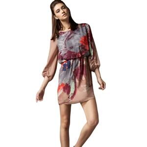 tibi New York Size 6 Viola Silk Chiffon Minidress Abstract Watercolor