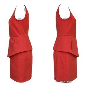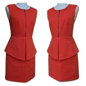 tibi Orange Reddish Peplum Mini Dress Two Zip Stretch Lined Size 4 City Cocktail