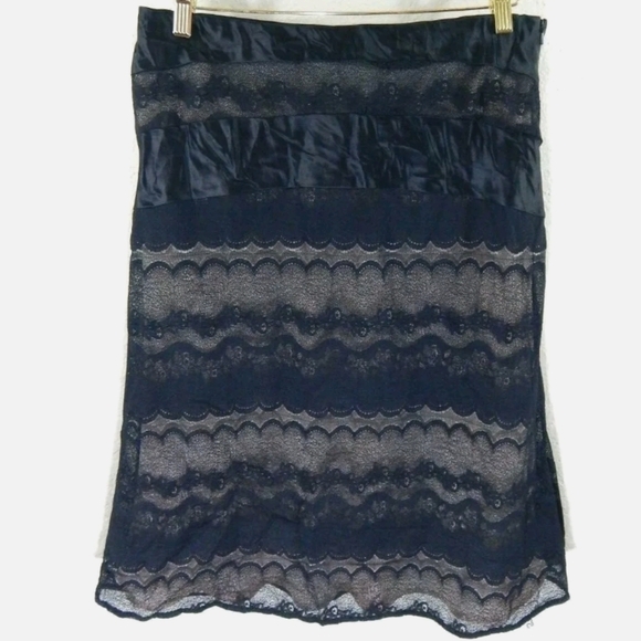 tibi Scalloped Lace Satin Striped A-Line Skirt