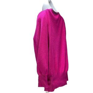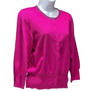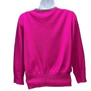 tibi Sweater Fuchsia Silk Blend Jeweled Neck Cardigan Elbow Sleeve Womens Size L