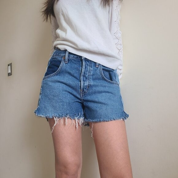 Ética Hevan Relaxed Fit Size 26 Raw Hem High Rise Two Tone Denim Cutoff Shorts
