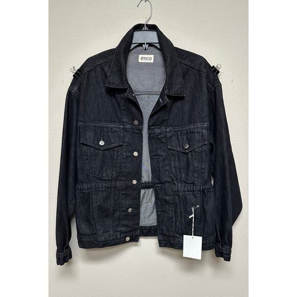 Ética Phoenix Cinched Waist Trucker Jacket – Black Denim Women Size S
