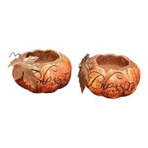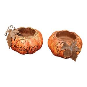 tii Collections Set Blessings Thanksgiving Resin Pumpkin Tin Leafs Candle Holder
