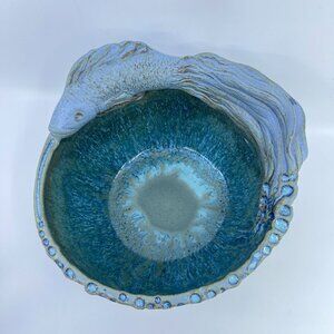 timberlate ceramic arts handcrafted ceramic bowl with fish & starfish design