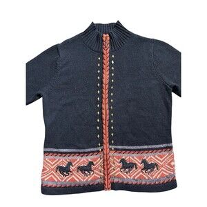 timberlea Horse Trim sweater Zip Up Equine Western Studded Sz M