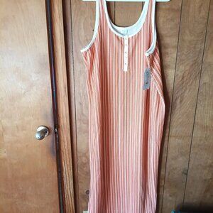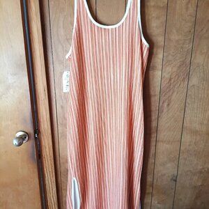 time and tru womens maternity tank maxi dress orange and white striped size XL