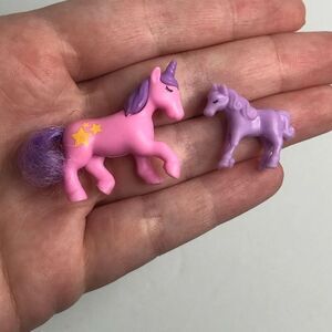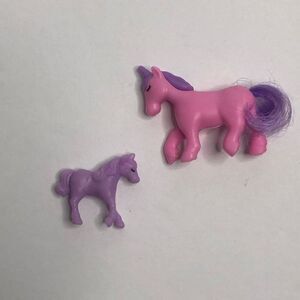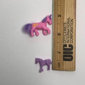 tiny little ponies pink and purple 1 inch 1/2 an inch miniature small doll accessories