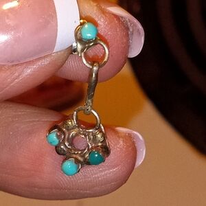 tiny turquoise and sterling silver seed pod chandelier drop earrings