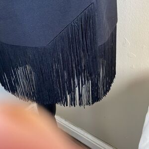 EUC! Fun and flirty black mini skirt with pockets and fringe/tassels on the bottom. Zips up the side. Nice quality material, well-made piece to add to your closet!