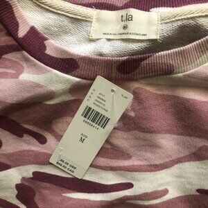 New from Anthropologie. t.la flutter sweatshirt t shirt. Fun camo print Medium. First photo is stock photo