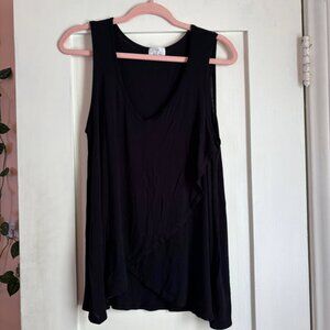 t.la tank, urban outfitters tank, black sleeveless top, drape front tank, wrap front tank, asymmetrical hem top, soft jersey tank, basic layering top, women’s small black top, casual chic staple