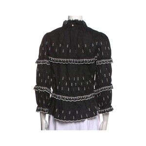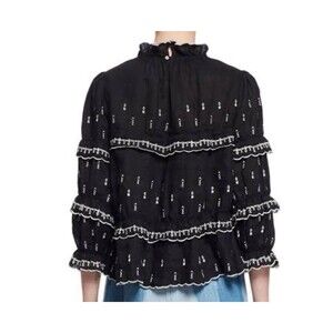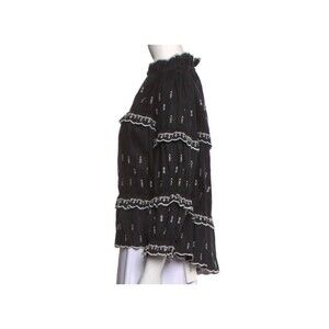 Étoile Isabel Marant Ruffle Blouse Linen Size 40 US 8 Daniela Black Embroidered