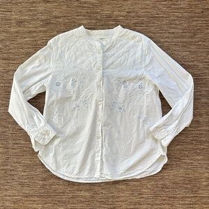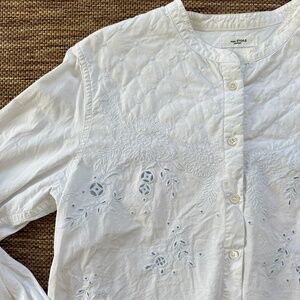 Étoile Isabel Marant White Lace Embroidered Quilted Collarless Button Down Shirt