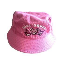 Top off your look with this adorable Tokidoki Girl Squad pink bucket hat, featuring fan-favorite characters embroidered on the front including Donutella, My Melody, and Kuromi. The pastel pink cotton fabric and playful “GIRL SQUAD” design make this hat perfect for lovers of kawaii, anime fashion, and Sanrio-style streetwear.