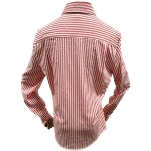 tommy hilfiger salmon/white striped button down polyester/rayon/spandex business