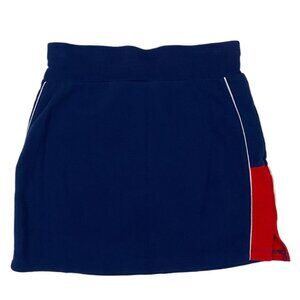 tommy hilfiger sport mini skort. mid rise fit. size xs waist flat 14" to 15" length 15" rise 9.5" 60 cotton 40 poly