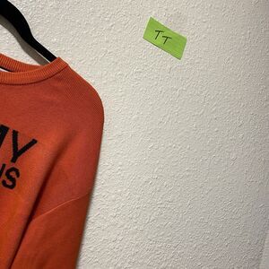 tommy hilfiger sweater small womens knit cropped orange spell out $79 nwt tt