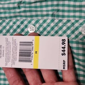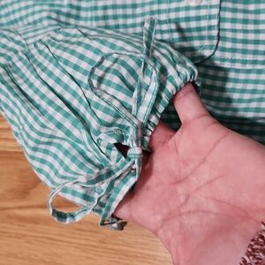 tommy hilfiger women's gingham shirt short sleeve runched button down size M