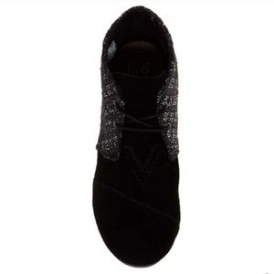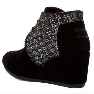 toms // black metallic bouclé wedge booties
