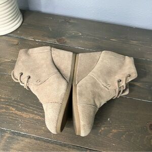 toms wedge booties Ankle Boots Desert Suede Beige Fall Boho Casual 6.5