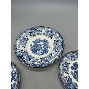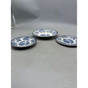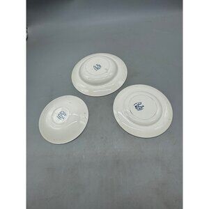 tonquin royal Stafford Clarice Cliff Blue White Ironstone Bowl Plates Set Of 3