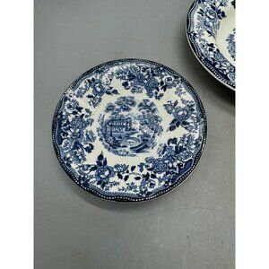 This set of three tonquin royal Stafford Clarice Cliff bowl plates features a classic blue and white floral pattern, adding a touch of elegance to any dining setting. Crafted from durable ironstone, these plates are both functional and decorative, making them suitable for daily use or display.