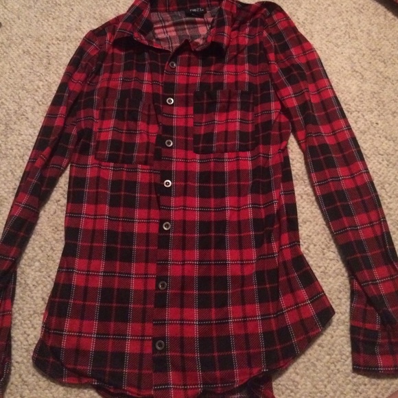 flannel style top. black and red checkered