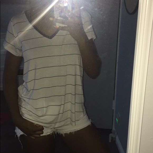 black and white stripped v-neck