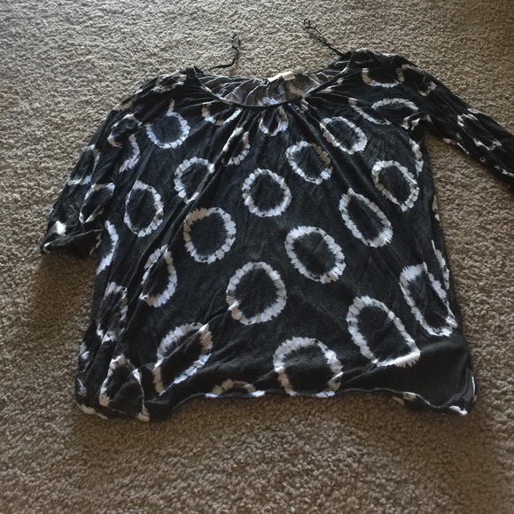 black and white 3/4 sleeve top. scoop neck