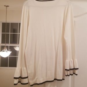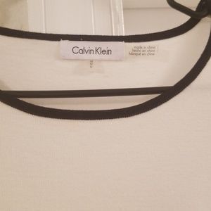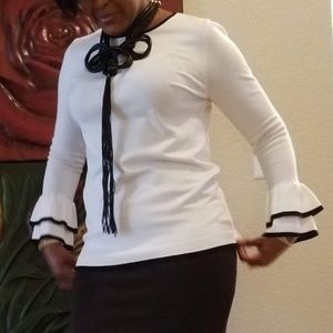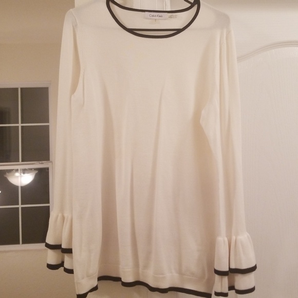 Cream Calvin Klein Top with Bkack trim around neck, bottom and sleeves. Ruffle wide sleeve. See pic. worn once, good preowned condition !