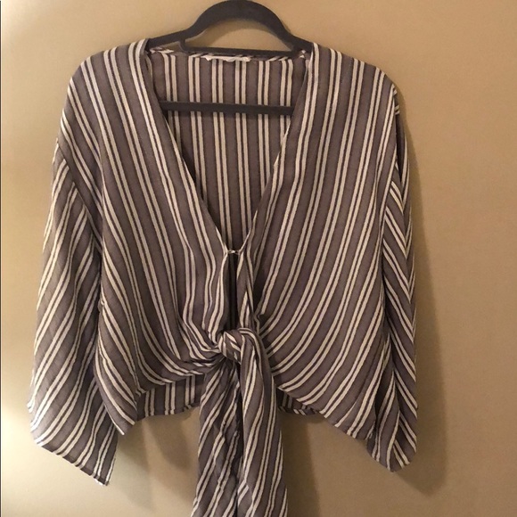 grey and white stripe tie top. great fit! very flattering! worn once.