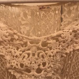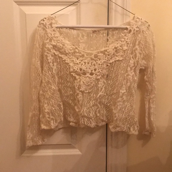 eggshell colored crochet top, size small, from hollister, 3/4 length sleeves, a bit cropped