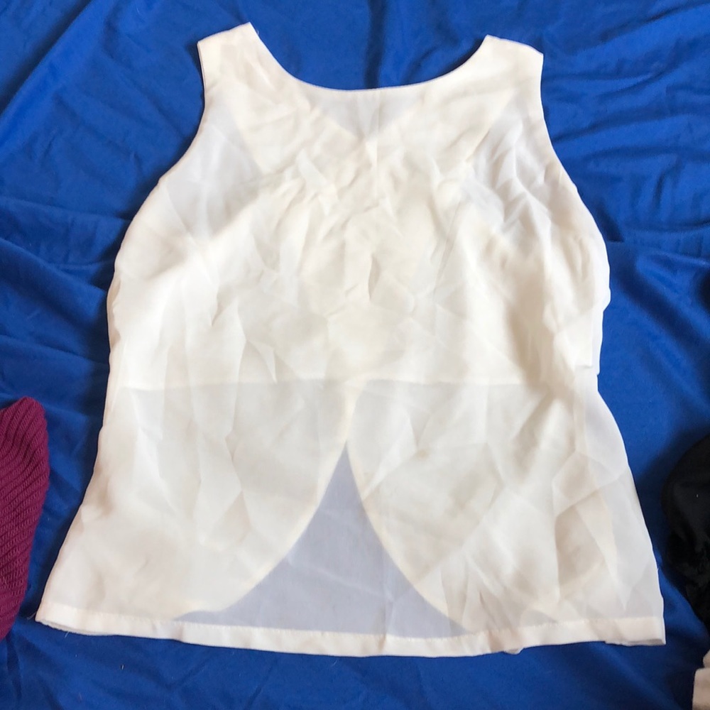 this very cute tank top is great for interviews as well as just going out for the night it have a crop top white tank inside but cuts off when gets to stomach so it is see thru very cute and breezy