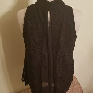 WHBM Lace over sheer cami, all in one top. faux buttons down the back. lots of sex appeal for a nighr out, great over jeans. Reasonablr offers encouraged.