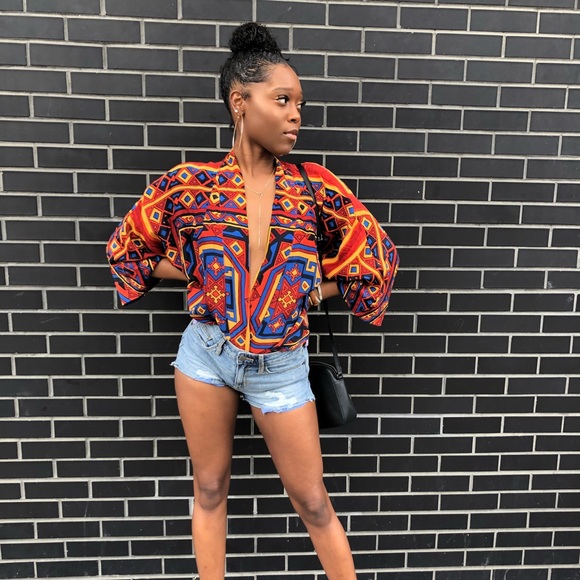 multicolored tip that can be worn open as a cover up or shirt
