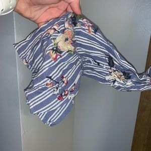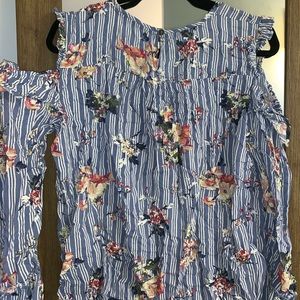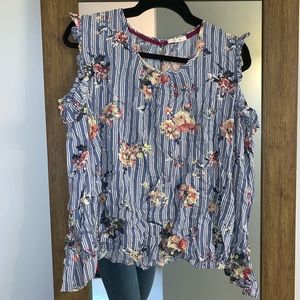 Floral and striped top with cold shoulders and bell sleeves. Great for a country concert! Adorable on and only worn twice!