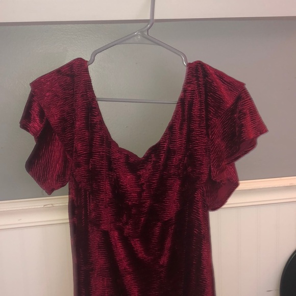 off the shoulder red swayed comfy ruffled