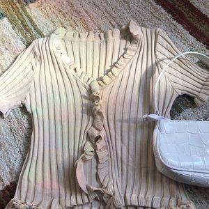 super cute outfit. i made this outfit and i think it looks very cute and fashionable. (i’m not selling the white shoulder bag) but if ur interested in the top and skirt please leave a comment. also i just got these so there is no stains or anything. DO NOT BUY. SEND OFFERS