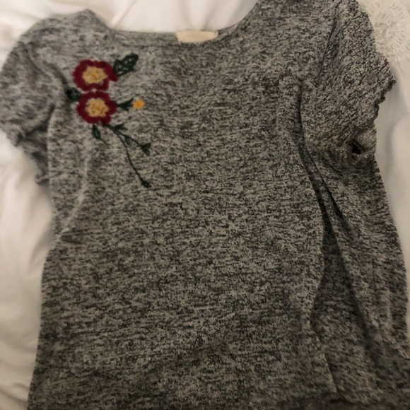 grey luttuce sleeves top, embroidered flower, great condition, very soft