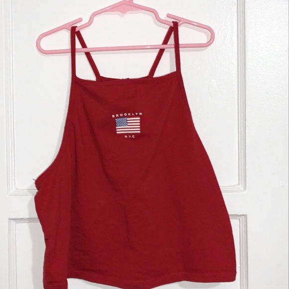 red top with “brooklyn N.Y.C” lettering & american flag