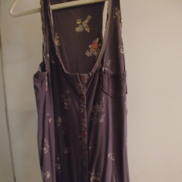sleeveless buttons all the way down the front longer tunic length has subtle flower background GUC