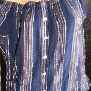 Very comfortable off the shoulder with elastic on waist and arm. Smoke and pet free home.